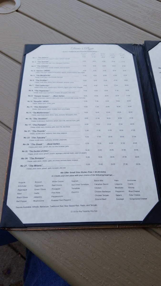 Dario's Pizza Menu