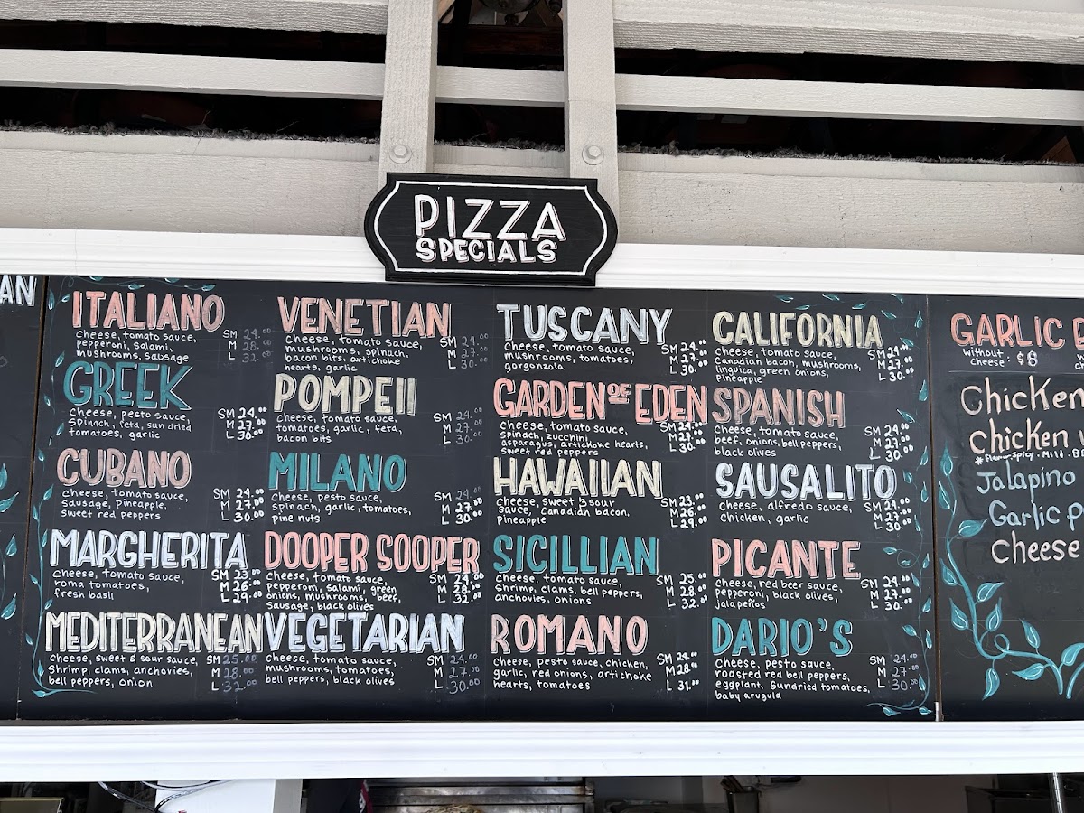 Dario's Pizza offers a straightforward and inviting menu that complements its relaxed Sausalito setting. The focus is on classic, satisfying dishes that feel just right for a casual lunch, an easy dinner, or a cozy takeout night in. Whether you're settling in to enjoy a slice or picking up a full meal to share, the menu balances comforting favorites with fresh, well-prepared options.